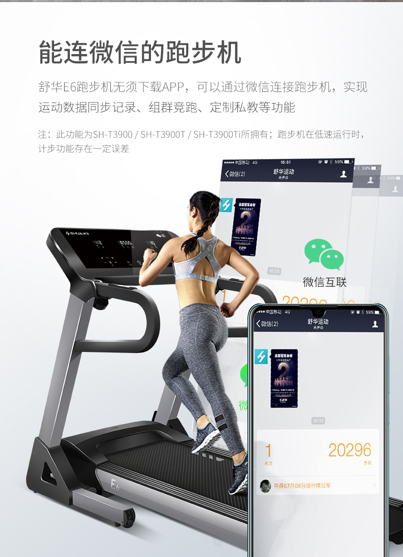 舒华(SHUA)跑步机E6家用折叠减震静音智能微信互联SH-T3900素墨黑 ZS