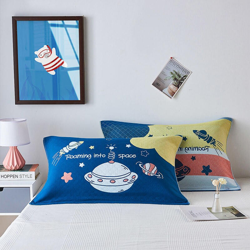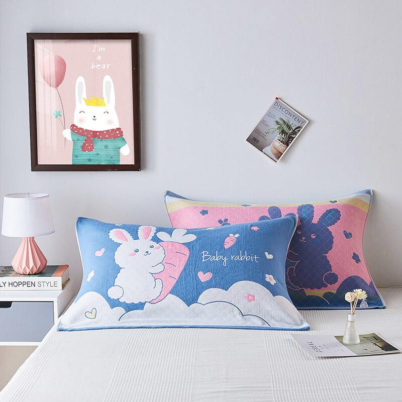 南极人家纺 40股宽边纯棉纱布枕巾一对2条装柔软透气吸汗双人情侣加厚枕头巾加大 太阳神蓝 52x75cm
