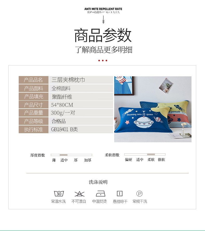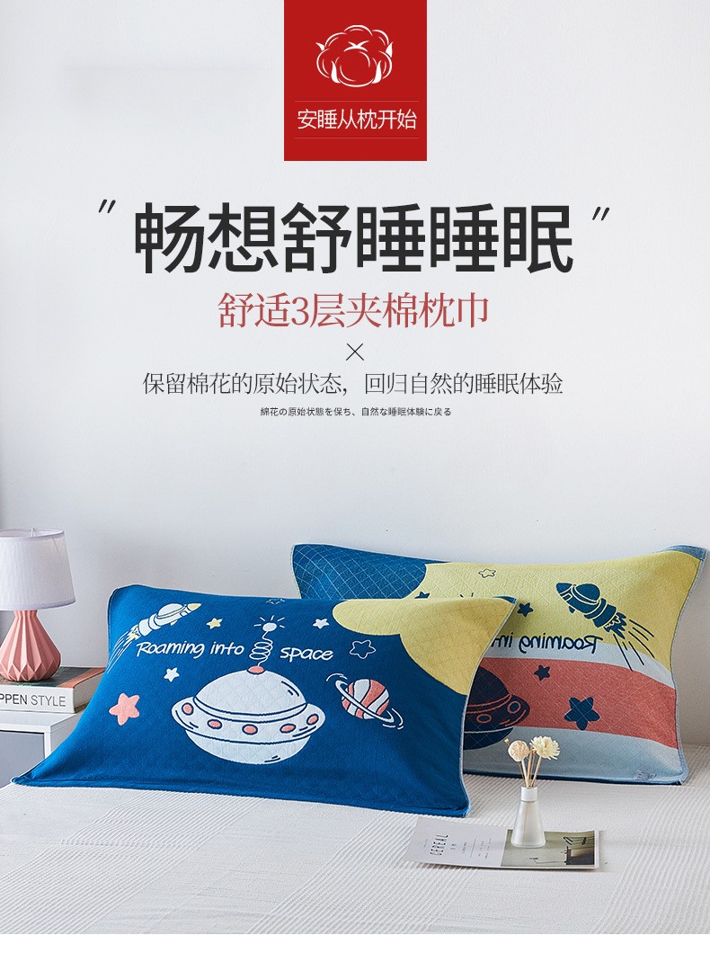 商品名称:南极人家纺 40股宽边纯棉纱布枕巾一对2条装柔软透气吸汗双人情侣加厚枕头巾加大 太阳神蓝 52x75cm