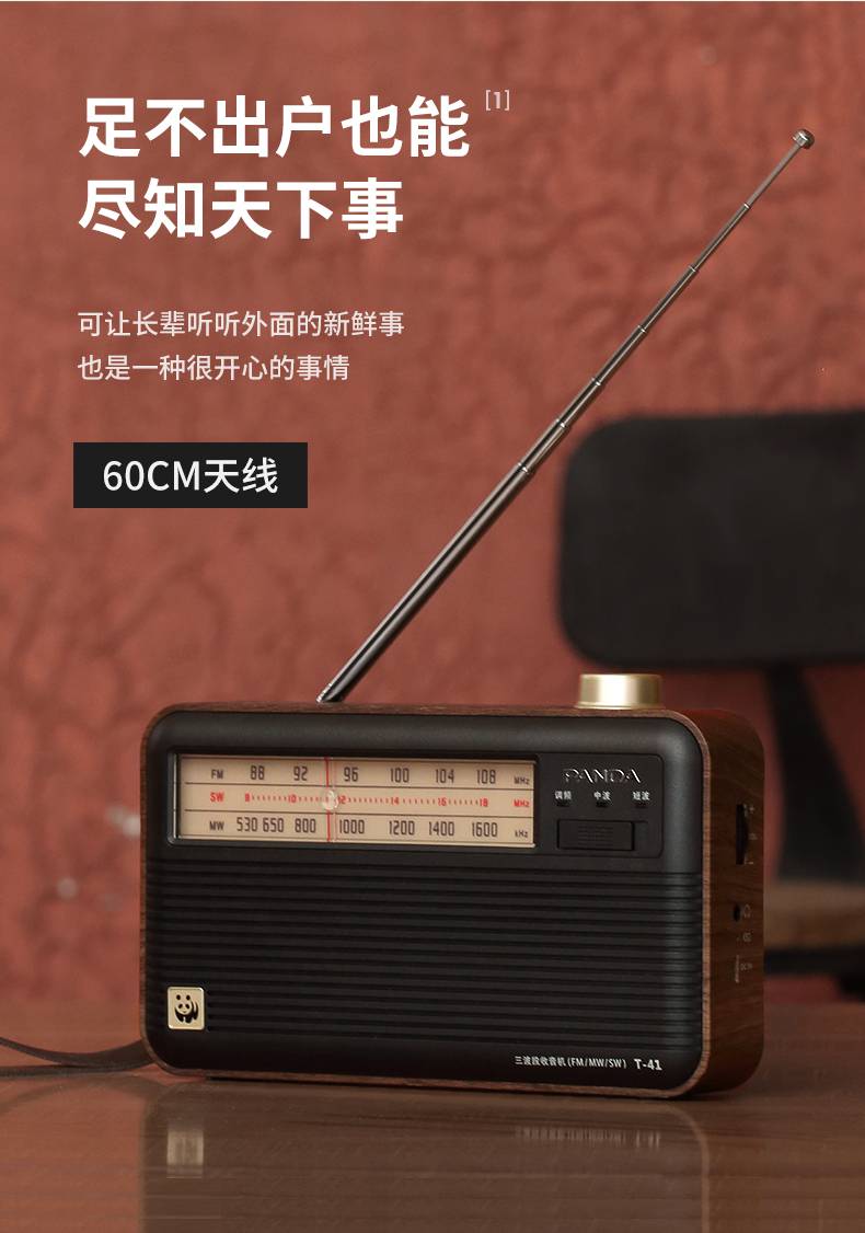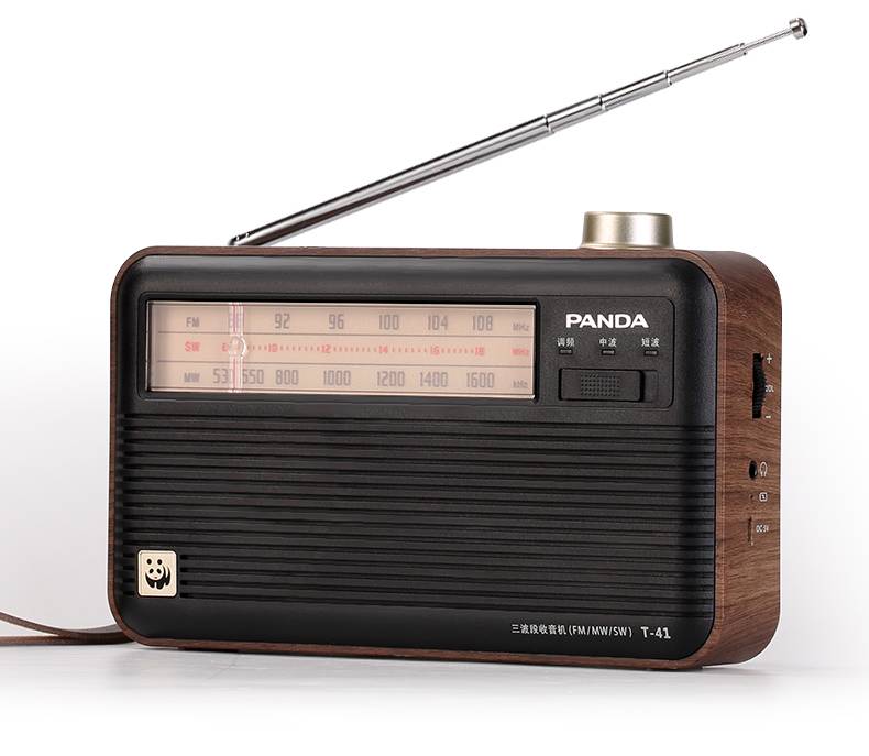 熊猫(PANDA)T-41怀旧复古收音机锂电池三波段木纹老年人半导体