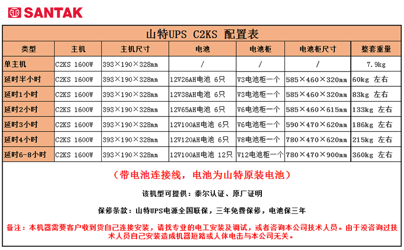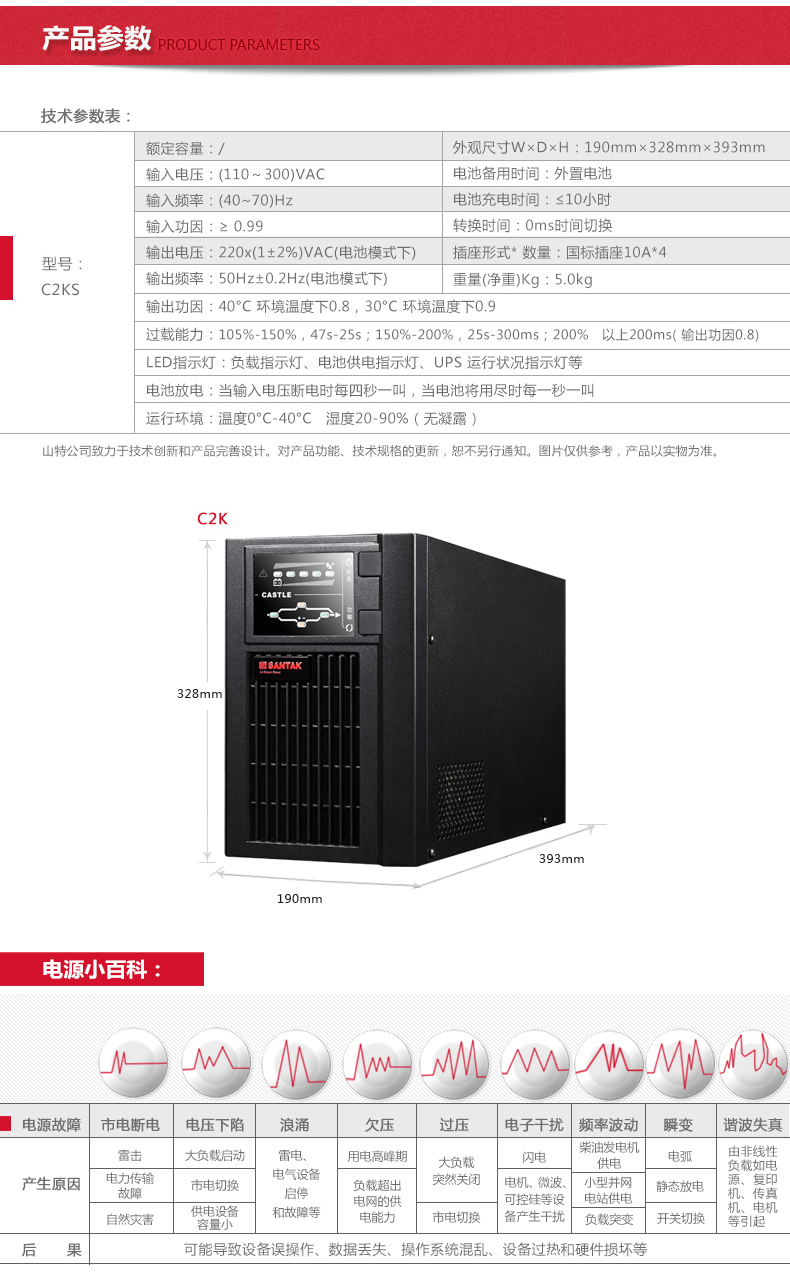 商品名称:山特(SANTAK)C2KS 2000VA/1600W在线式UPS不间断电源外接电池长效机 满载1600W供电4小时