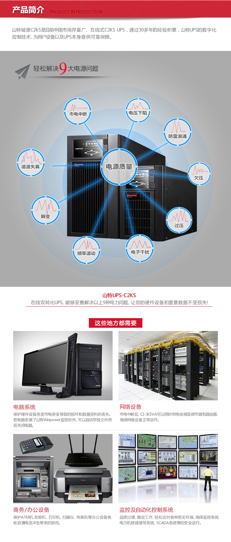 山特(SANTAK)C2KS 2000VA/1600W在线式UPS不间断电源外接电池长效机 满载1600W供电4小时