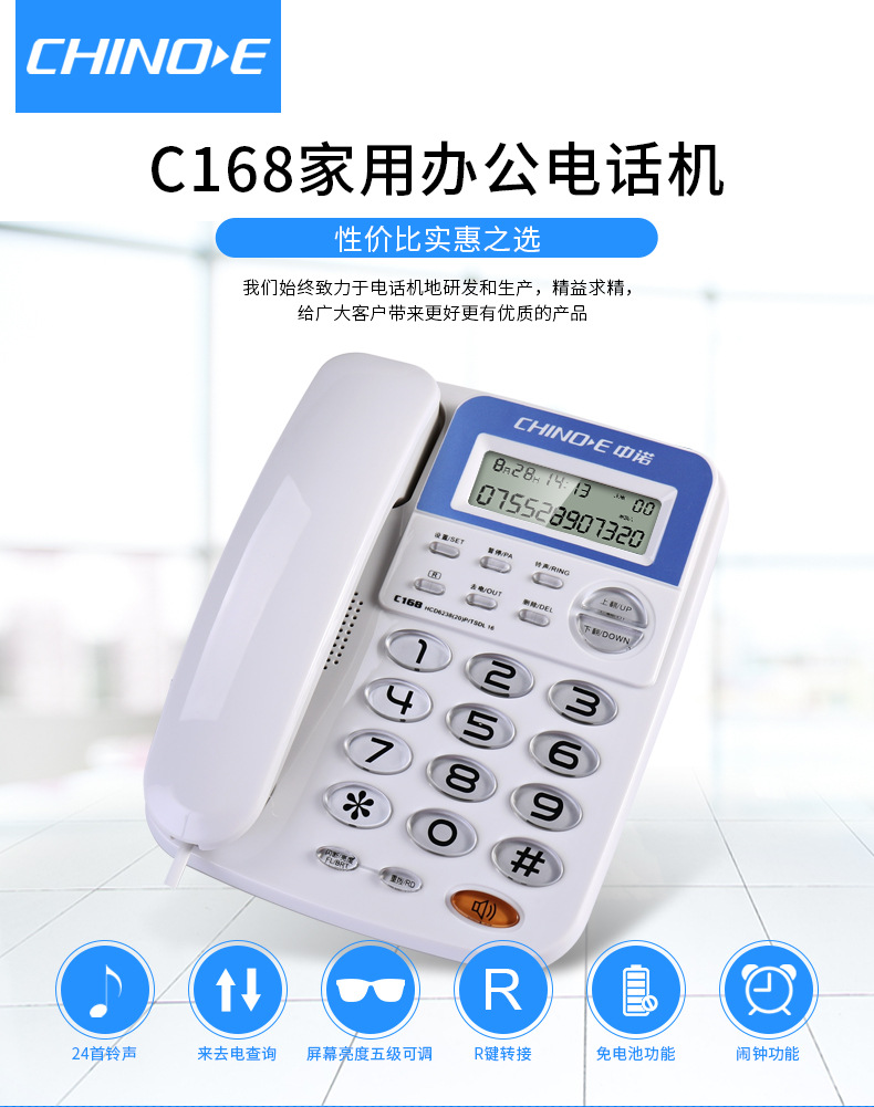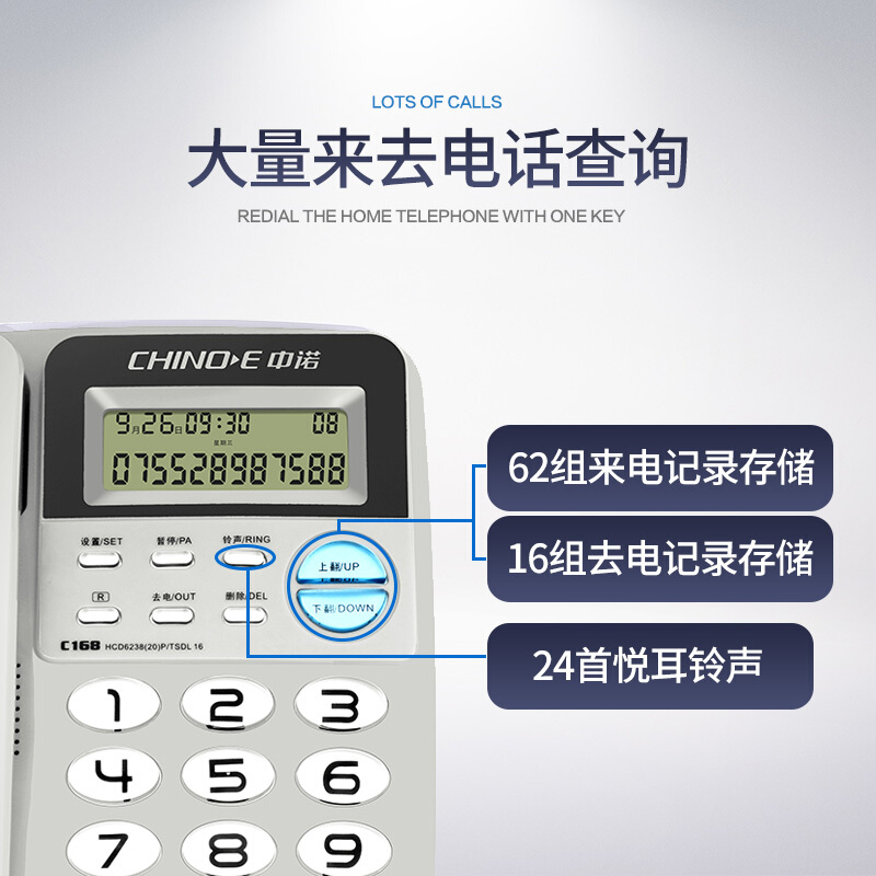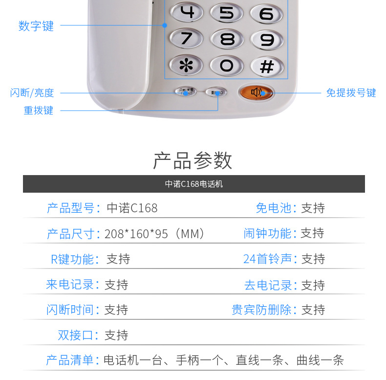 商品名称:中诺 固定 电话机 座机 电话 R键转接免电池 双接口 有线 板机 坐机 C168灰白