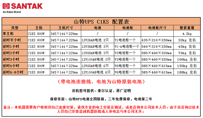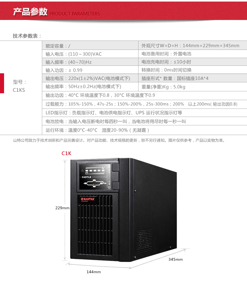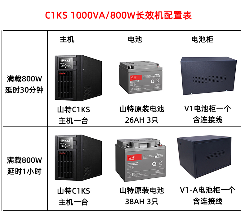 商品名称:山特(SANTAK)C1KS 1000VA/800W在线式UPS不间断电源外接电池长效机 满载800W供电3小时