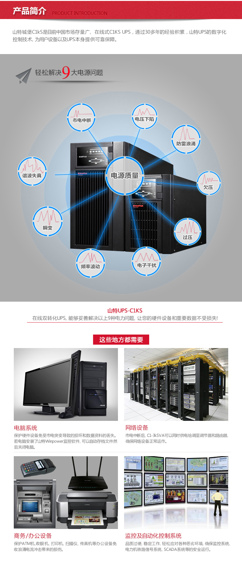 山特(SANTAK)C1KS 1000VA/800W在线式UPS不间断电源外接电池长效机 满载800W供电3小时