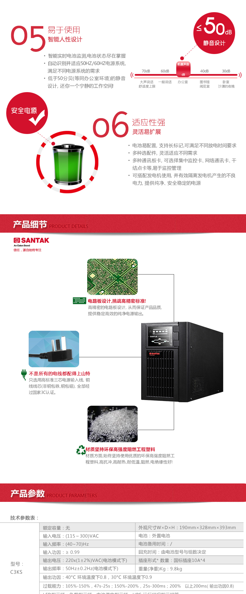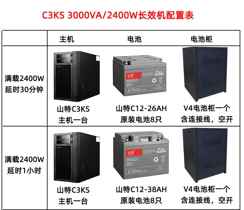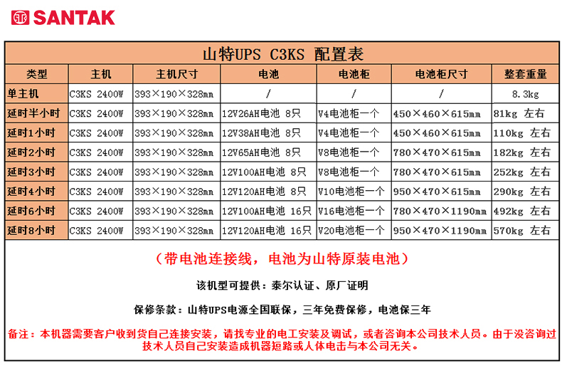 商品名称:山特(SANTAK)C3KS 3000VA/2400W在线式UPS不间断电源外接电池长效机 满载2400W供电4小时