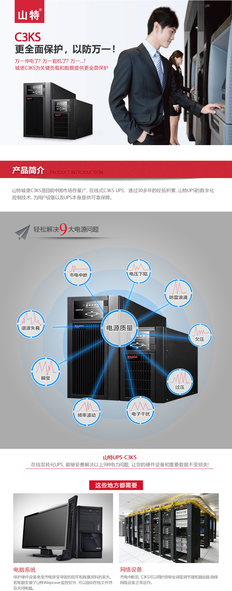 山特(SANTAK)C3KS 3000VA/2400W在线式UPS不间断电源外接电池长效机 满载2400W供电4小时