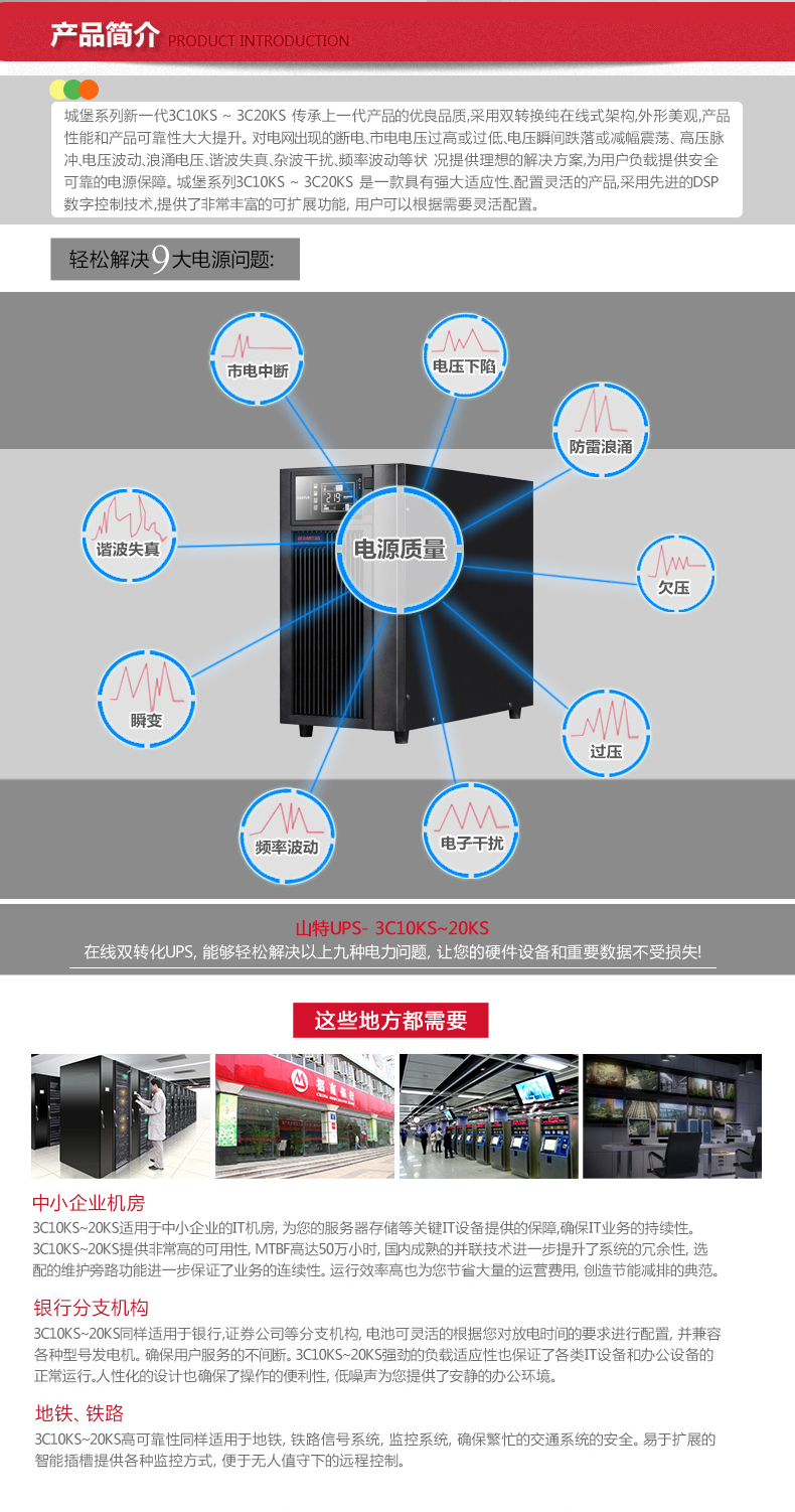 山特(SANTAK)3C20KS 三进单出在线式UPS不间断电源外接电池长效机 20KVA/18KW停电续航45分钟