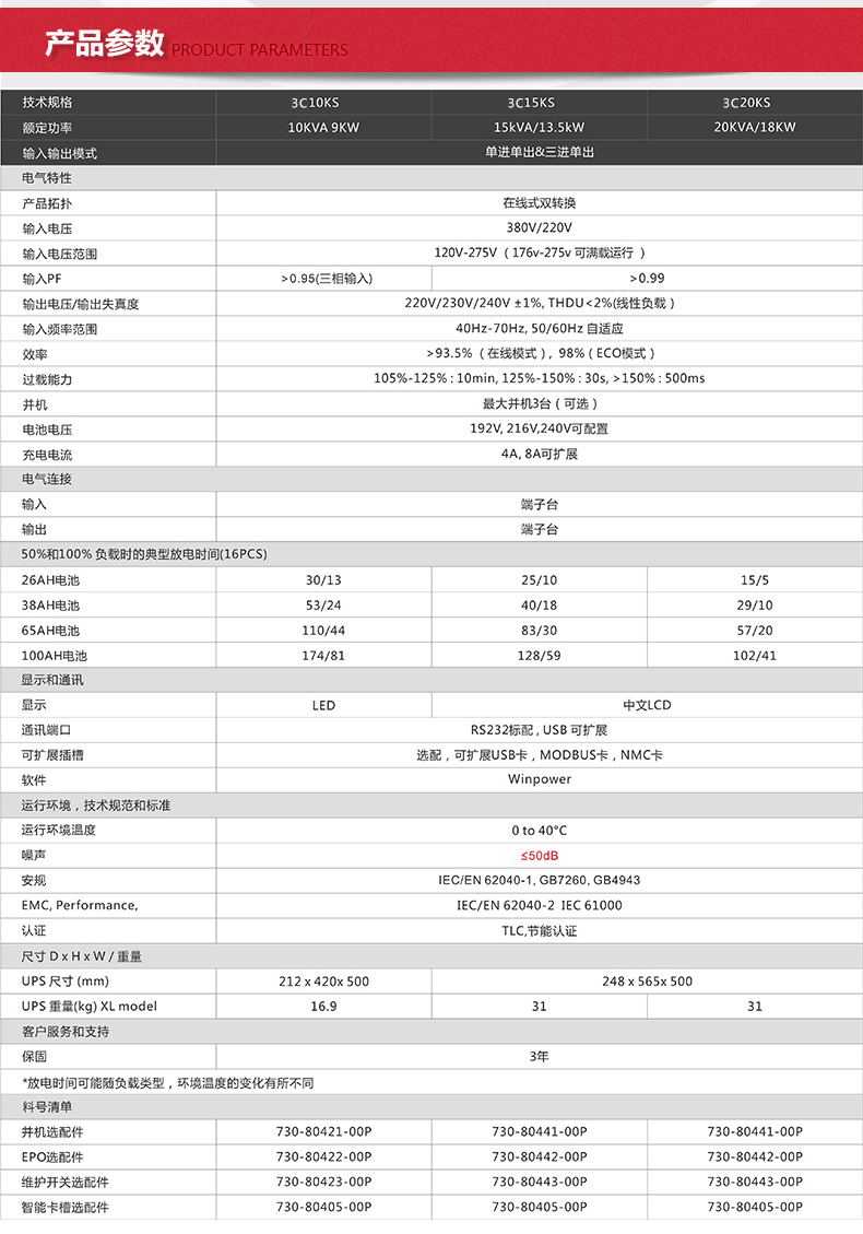 商品名称:山特(SANTAK)3C20KS 三进单出在线式UPS不间断电源外接电池长效机 20KVA/18KW停电续航45分钟