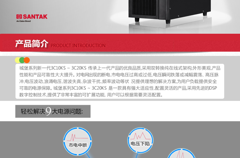 山特(SANTAK)3C10KS 三进单出在线式UPS不间断电源外接电池长效机 10KVA/9000W停电续航8小时