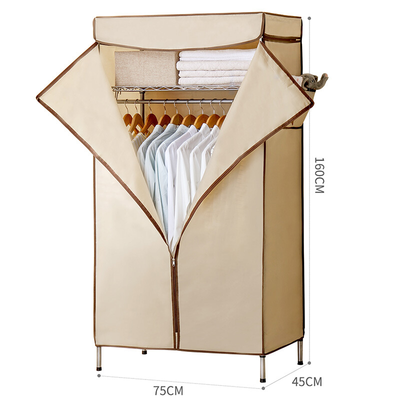 溢彩年华 简易衣柜钢架加粗加固牛津布衣橱75*45*160cm强承重置物架结构大空间布艺衣柜 YCB4006