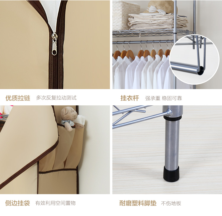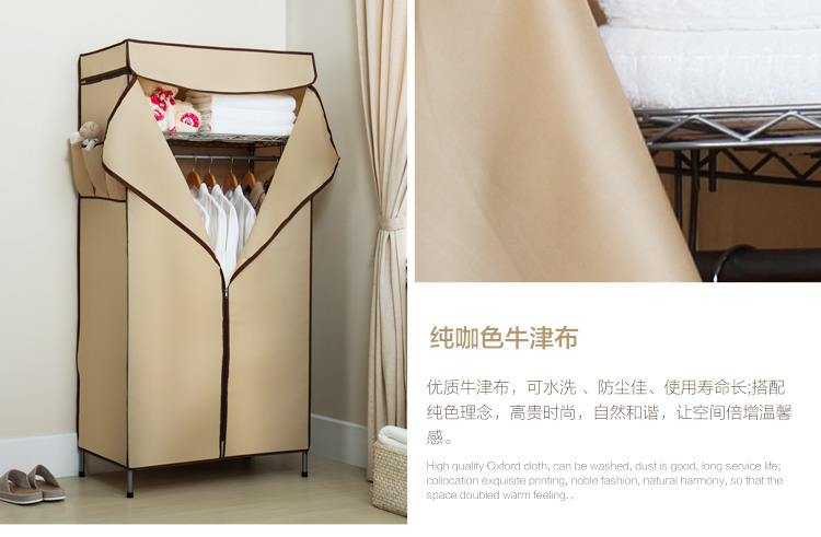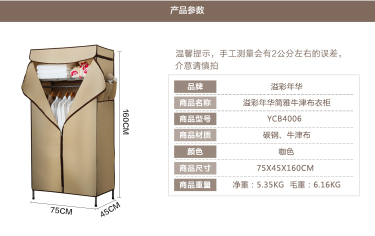 商品名称:溢彩年华 简易衣柜钢架加粗加固牛津布衣橱75*45*160cm强承重置物架结构大空间布艺衣柜 YCB4006