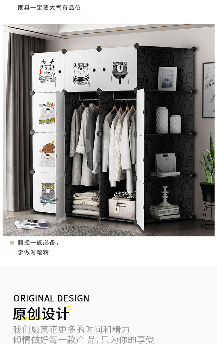 商品名称:安尔雅简易衣柜 组合塑料组装双人衣橱 现代简约非布实木儿童收纳柜