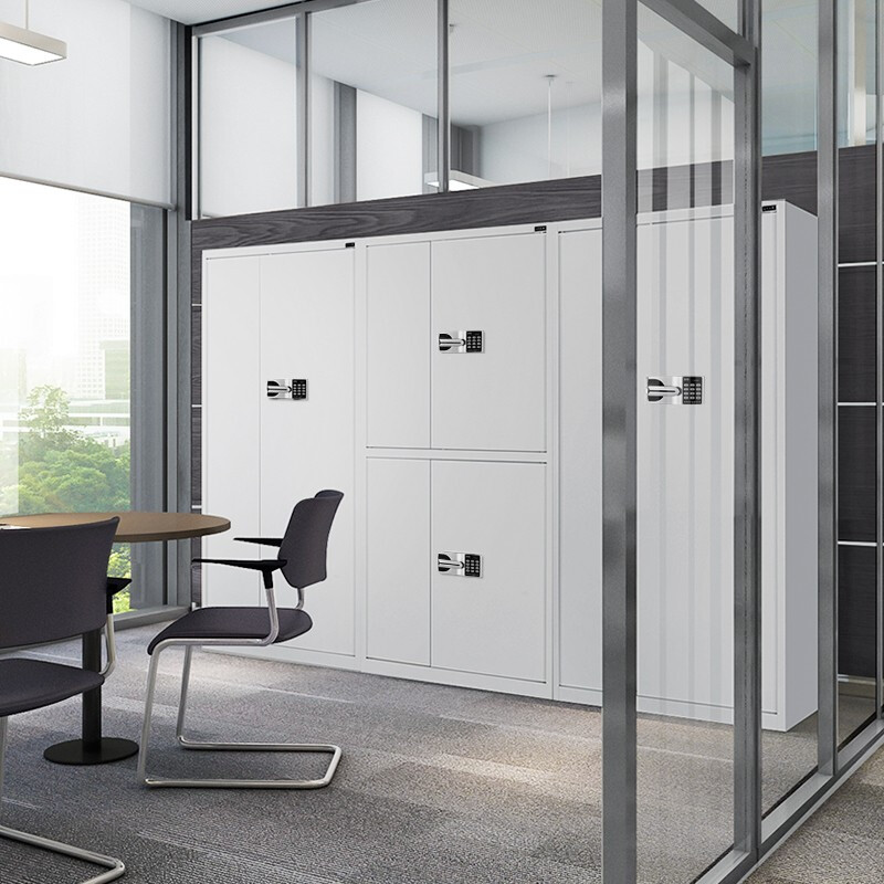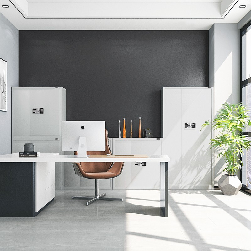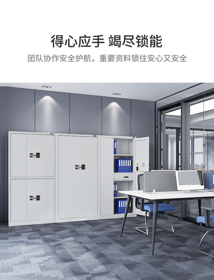 钱柜钢制保密柜密码矮柜文件柜办公保险箱铁皮柜档案资料柜 700指纹锁 天籁白