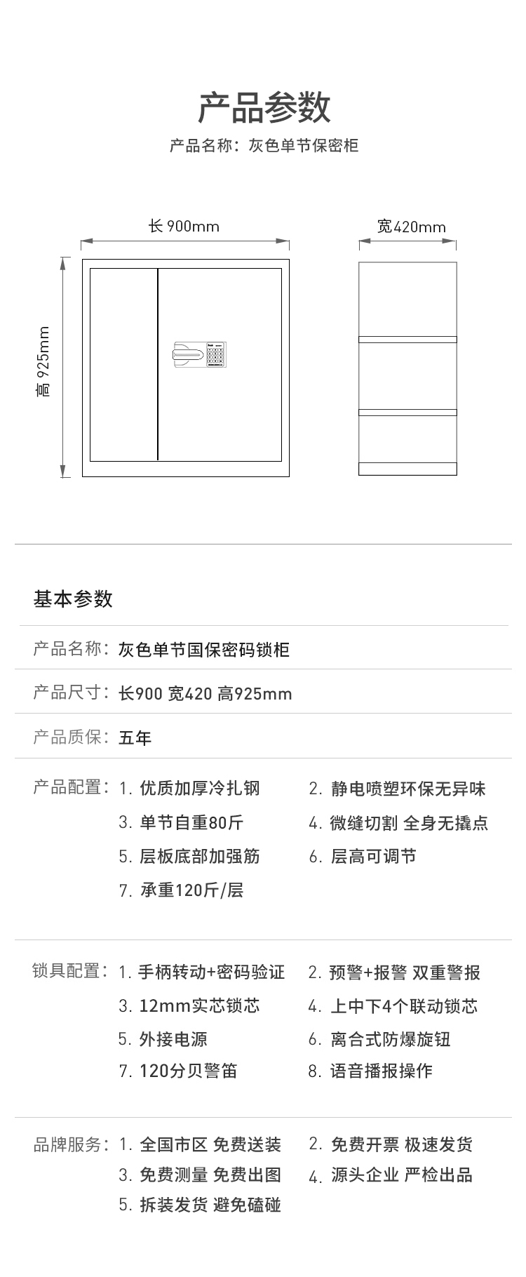 商品名称:富路达 钢制保密柜密码柜档案柜资料柜办公柜文件柜铁皮柜保险柜灰白色单节国保电子锁925高