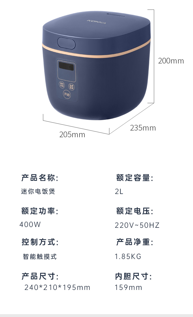 商品名称:康佳(KONKA)迷你电饭煲小电饭锅 2L容量智能温控24小时预约 KRC-RS1