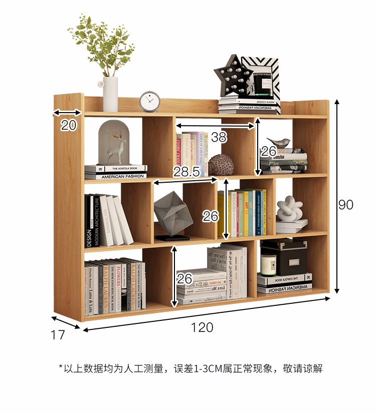 蔓斯菲尔书架简易落地书柜组合格子仿实木收纳柜置物架储物柜 100CM暖白色