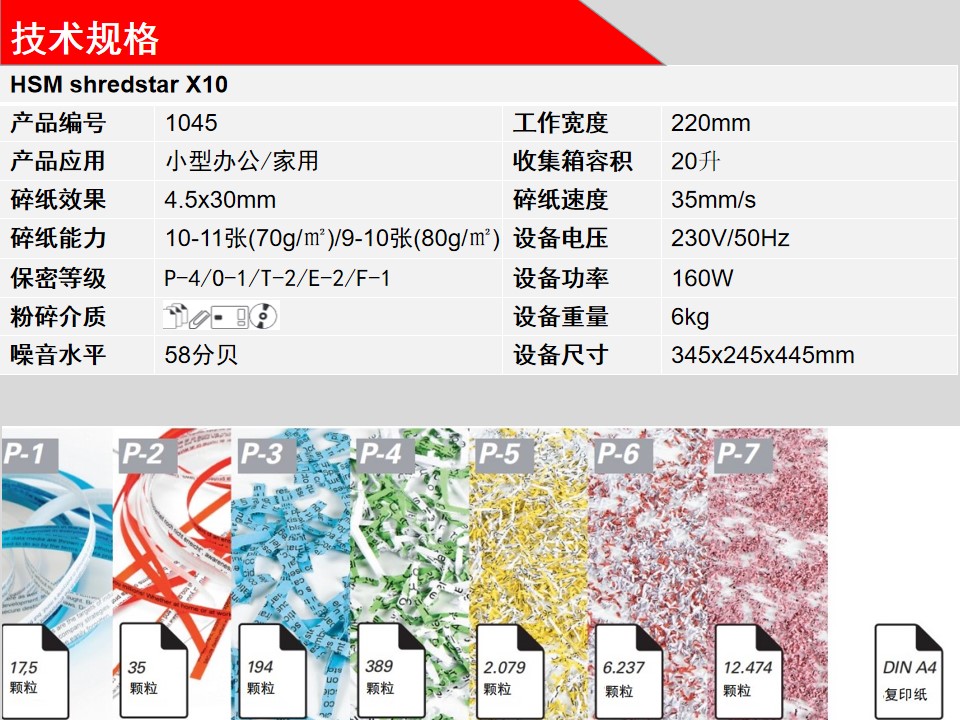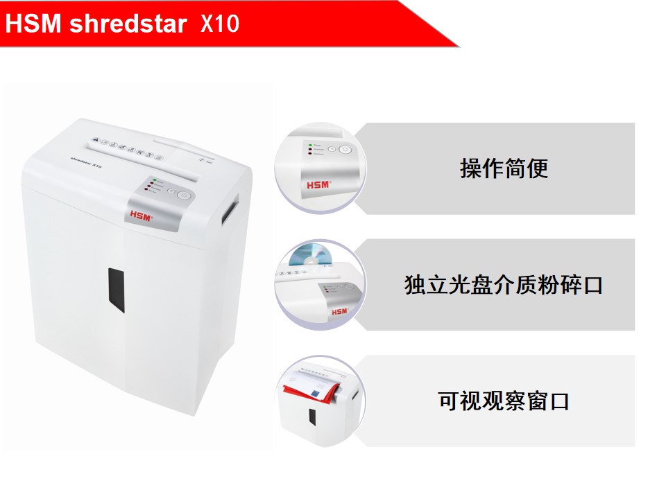 商品名称:赫斯密(HSM)shredstarX10小型家用和办公碎纸机德国4级保密可碎光盘
