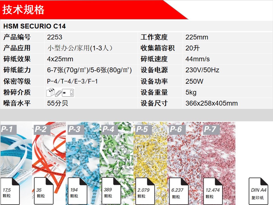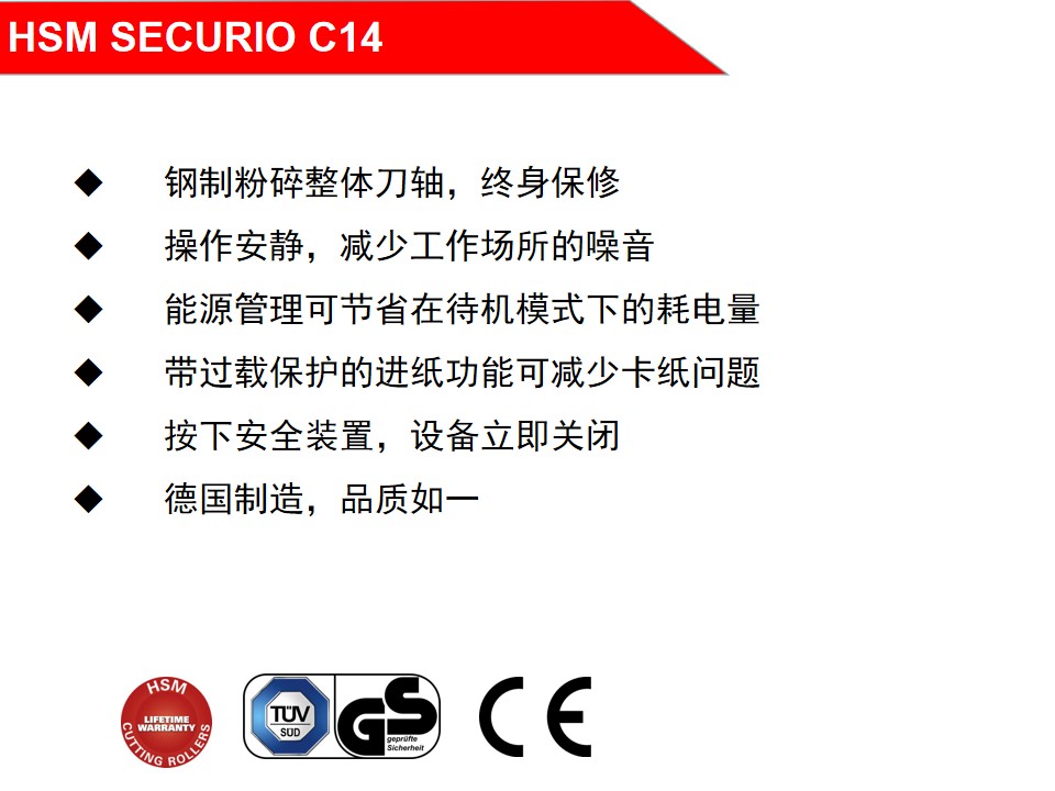 商品名称:赫斯密(HSM) SECURIO C14 小型办公碎纸机 自动启动/停止 德国4级保密