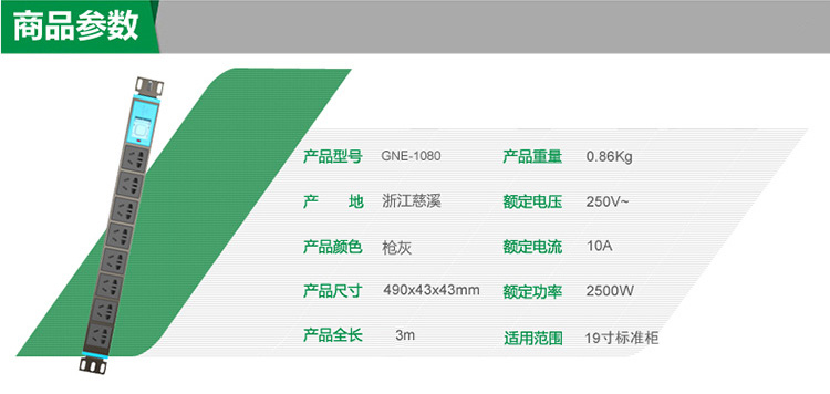 商品名称:公牛(BULL) GNE-1080PDU机柜插座/插线板/插排/排插/接线板/拖线板 8位总控全长3米