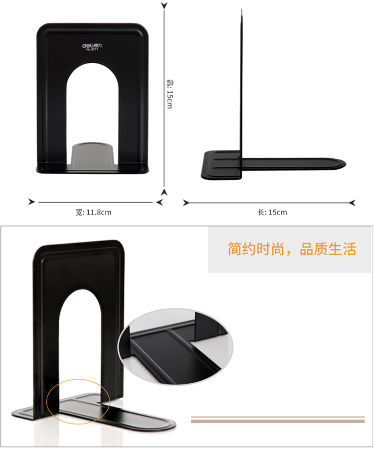 商品名称:得力(deli)9271 金属铁书立架 办公书靠2片/付 6英寸(高15cm) 颜色随机