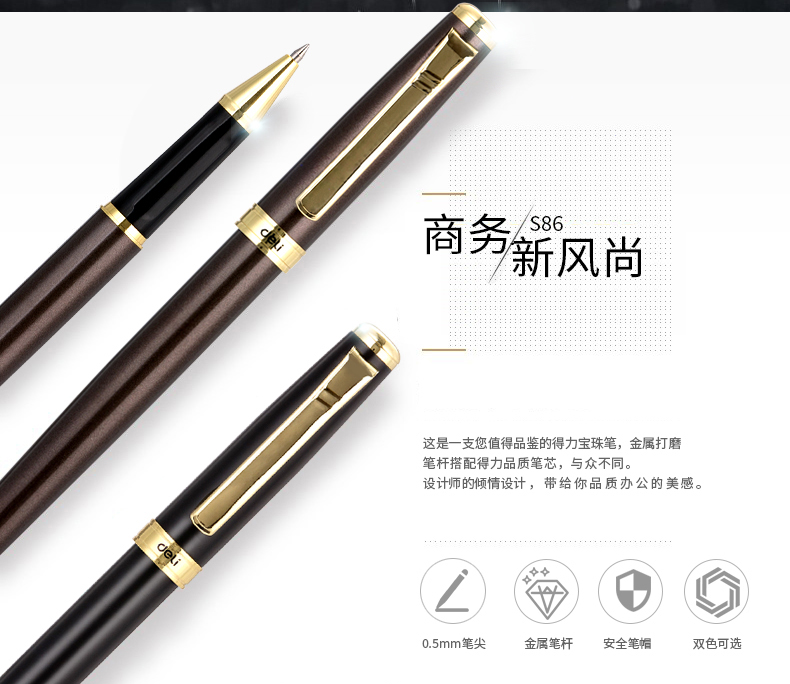 商品名称:得力(deli)S86中性笔金属中性笔老板签字笔办公中性笔黑色水笔盒装书写工具