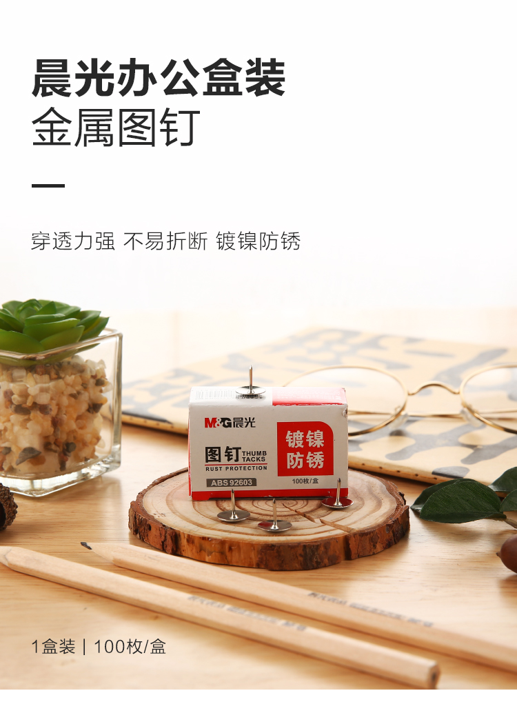 晨光(M&G)ABS92603 文具金属镀镍图钉软木画板按钉办公用品工字钉大头钉100枚/盒