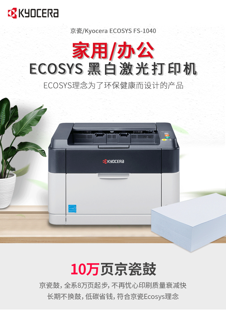 商品名称:京瓷(KYOCERA)FS-1040黑白激光打印机家用办公新上手机无线远程打印 手机打印墨粉套餐
