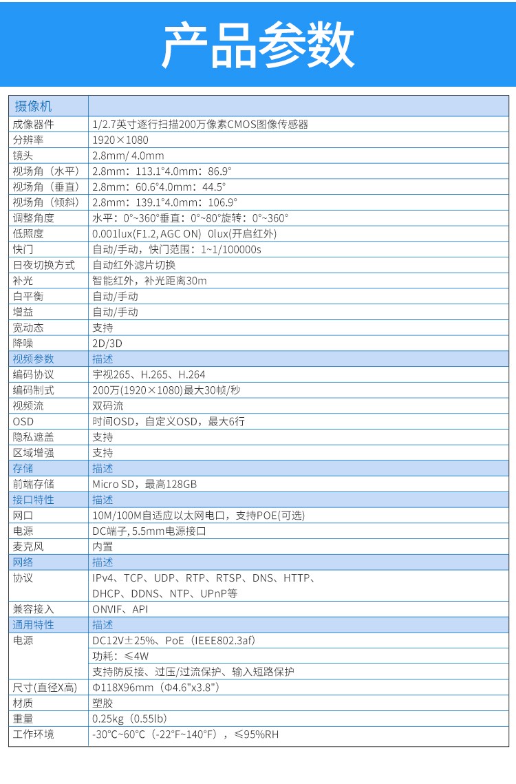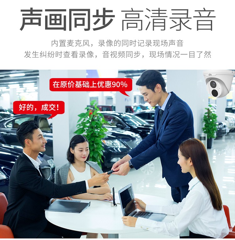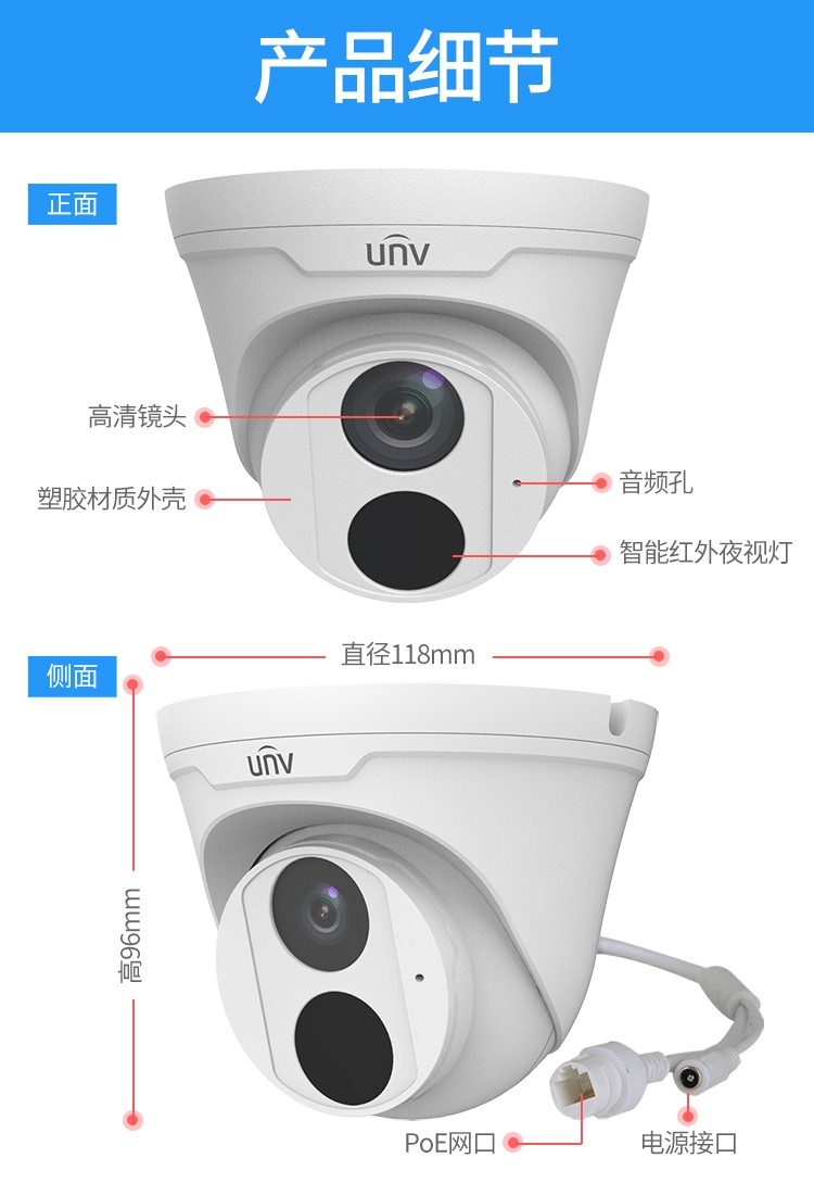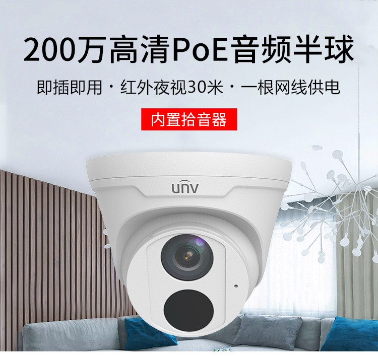 商品名称:宇视科技(uniview)焦距2.8mm 200万带音频 监控摄像头 高清红外数字探头内置拾音器监控套装poe供电网络半球 200万音频半球