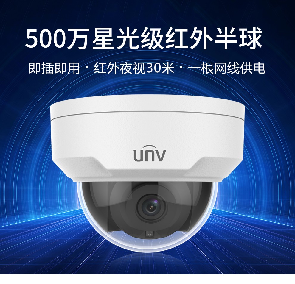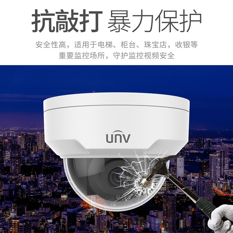宇视科技(uniview)500万焦距4mm 防暴监控摄像头500万防暴网络高清星光级工程款红外半球 监控器吸顶安装 防尘