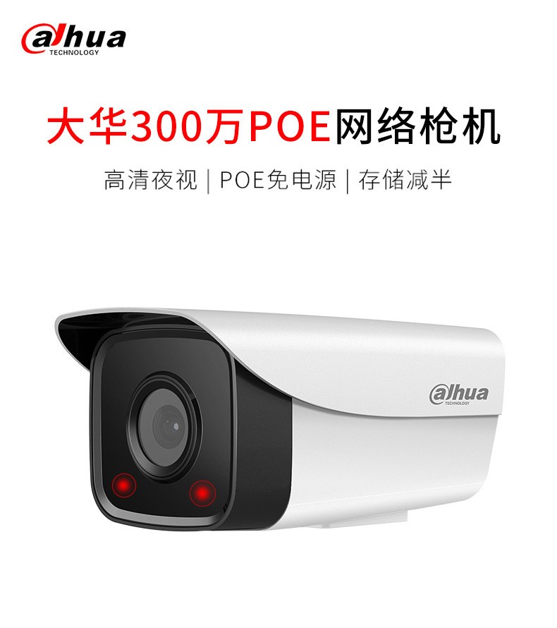 大华dahua DH-P20A1监控摄像头200万/300万室外poe供电网络监控器摄像机户外高清夜视枪机摄像头商用 (200万双灯红外版) 3.6MM+支架
