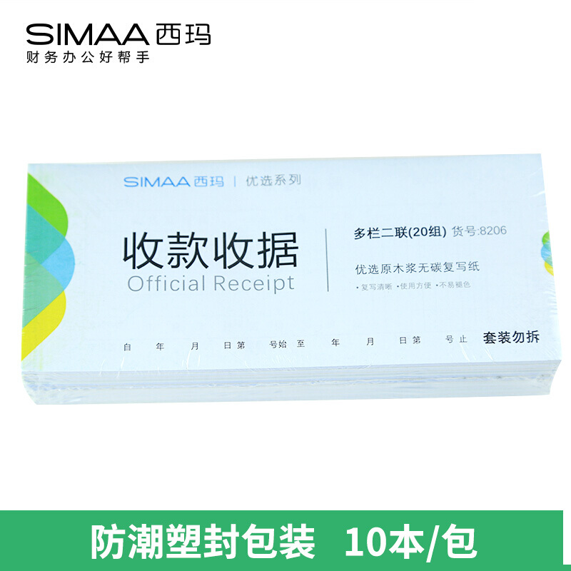 西玛(SIMAA)8206 二联多栏收款收据(20组)60k 175*75mm10本装财务手写收货收据凭证单据本无碳复写