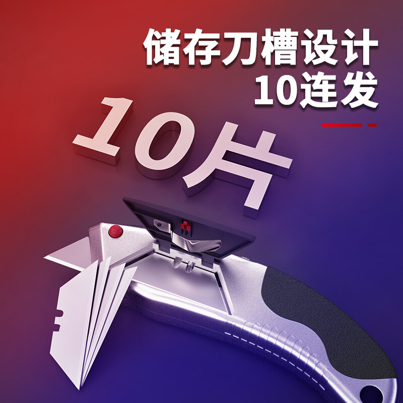 商品名称:得力(deli) 10连发重型自锁锌合金美工刀T型软胶美工刀壁纸刀裁纸刀地毯刀含10刀片 DL4262