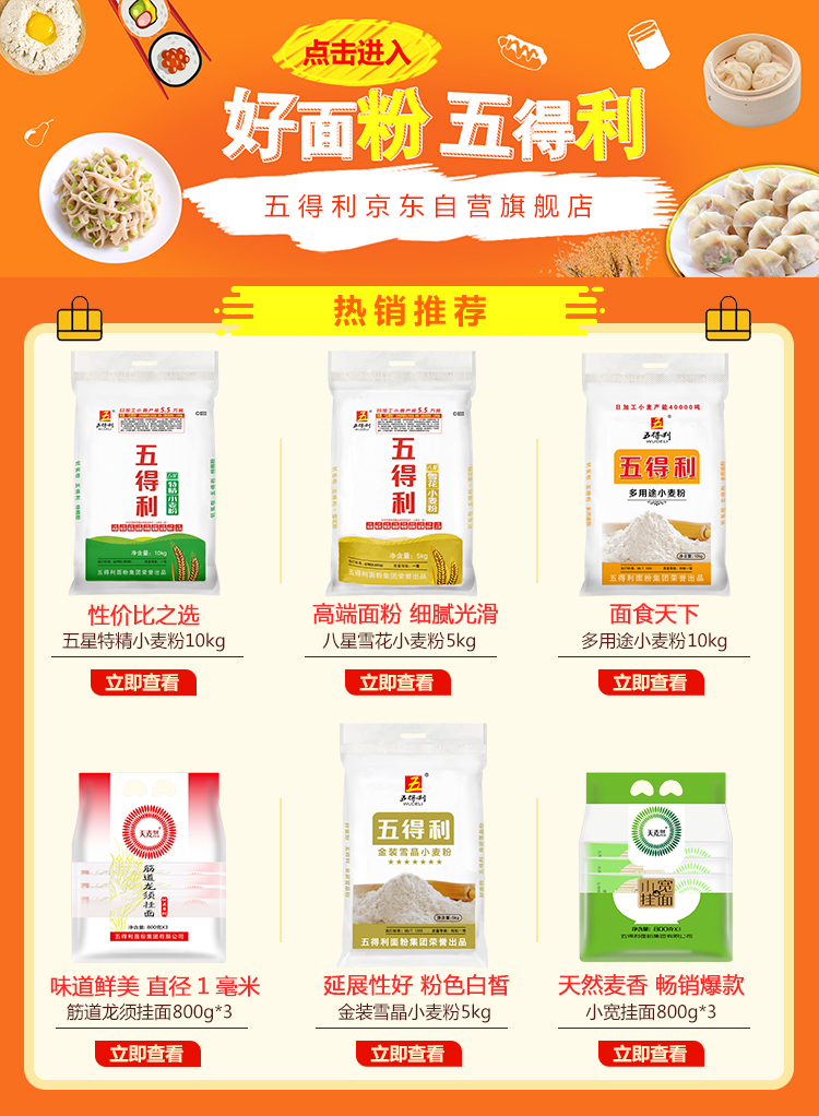 商品名称:五得利面粉 八星雪花麦芯小麦粉5kg家庭通用多用途家用中馒头包子饺子饼面条面包烘焙通用优质原料白面