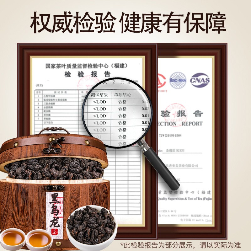 商品名称:醉然香茶叶 黑乌龙茶新茶木炭技法油切黑乌龙浓香型茶叶木桶装500g