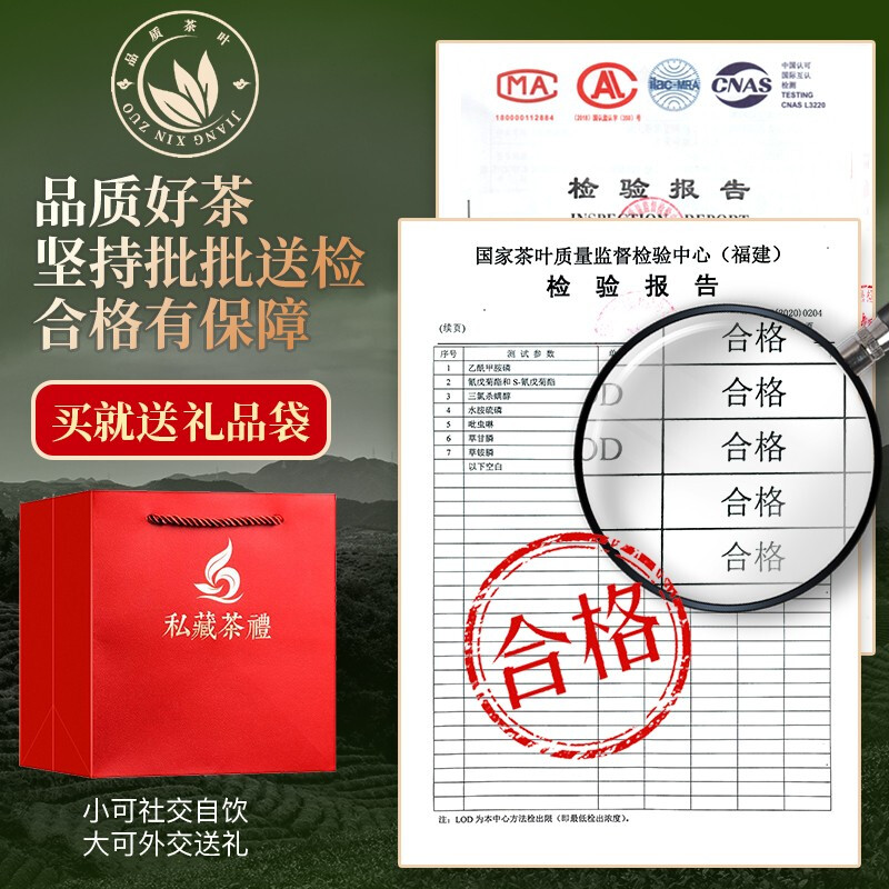加工工艺:采摘、晒青、晾青、摇青、炒青、揉捻、干燥