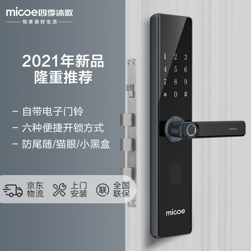 四季沐歌(MICOE)指纹锁密码锁智能门锁电子锁家用防盗门智能门标准霸王锁体屏幕防猫眼包安装S17 S17旗舰版