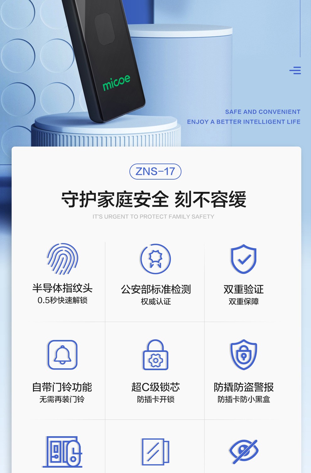 商品名称:四季沐歌(MICOE)指纹锁密码锁智能门锁电子锁家用防盗门智能门标准霸王锁体屏幕防猫眼包安装S17 S17旗舰版