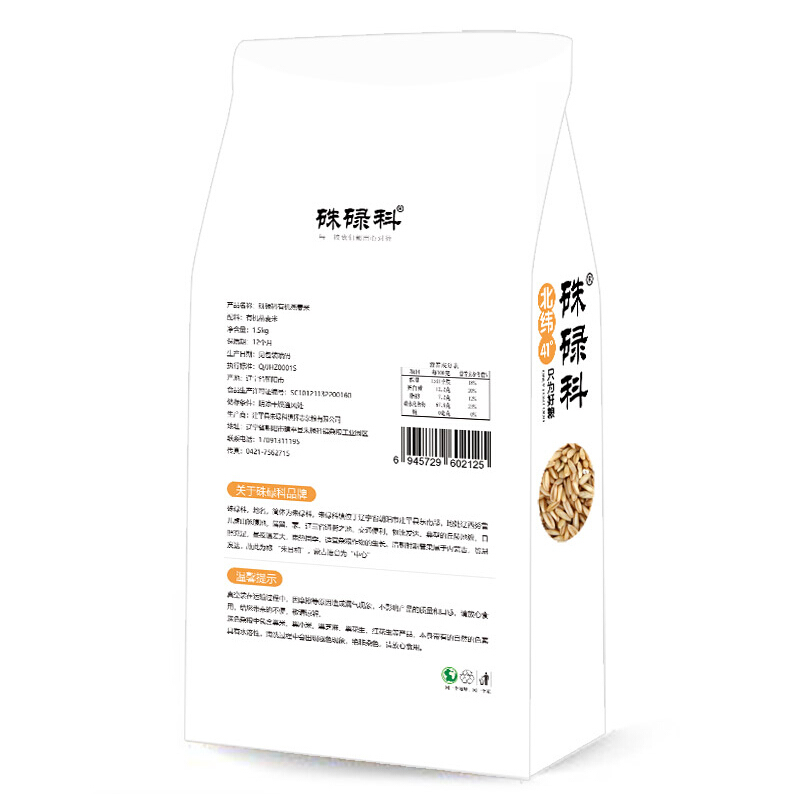 商品名称:硃碌科 有机燕麦米东北五谷杂粮麦仁米1500g(3斤)真空袋装 粗粮粥米伴侣