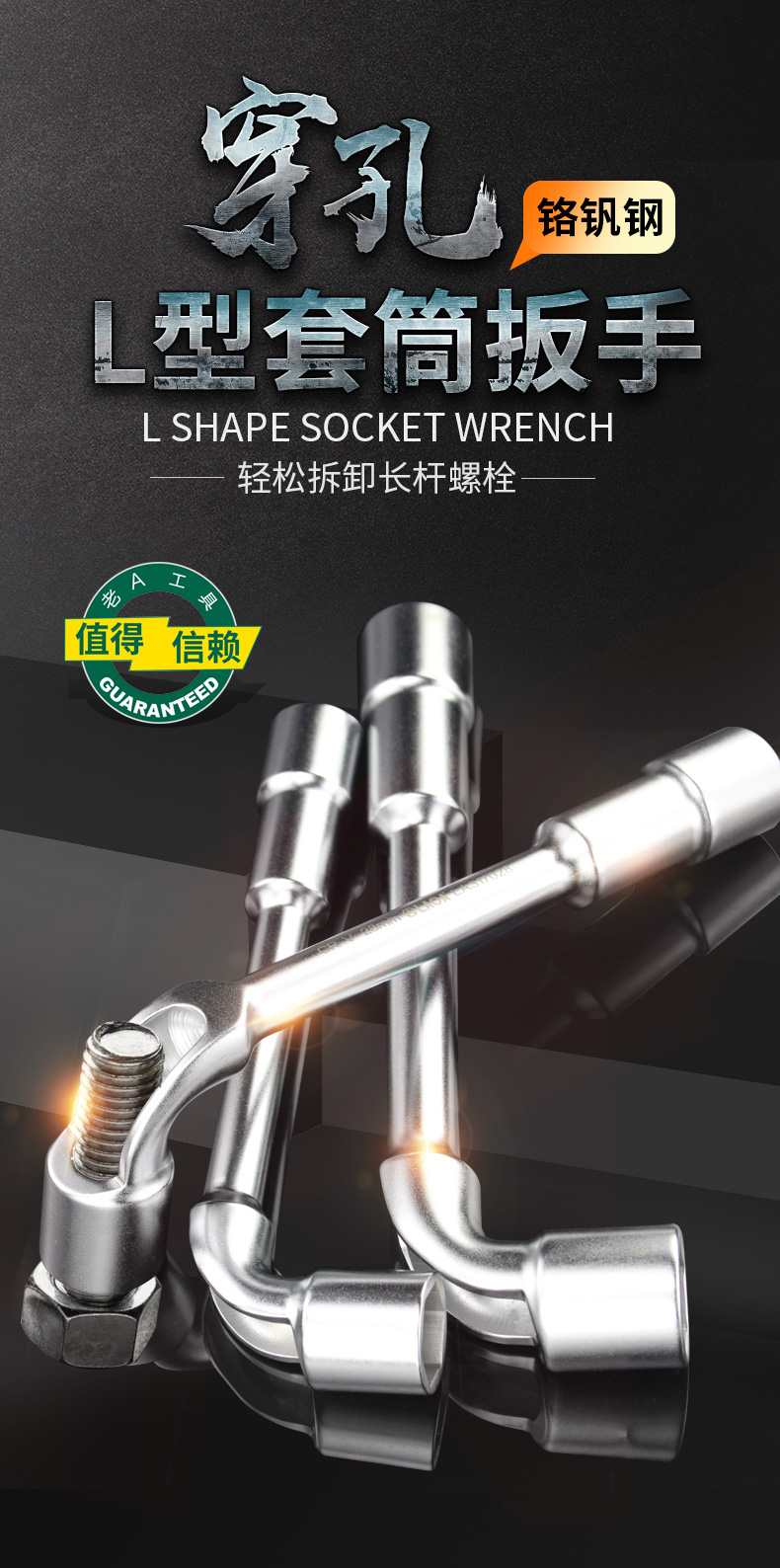 商品名称:老A LAOAL型套筒扳手7mm 多功能7字型弯头穿线扳手外六角双头修车工具LA317007 量大企业定制