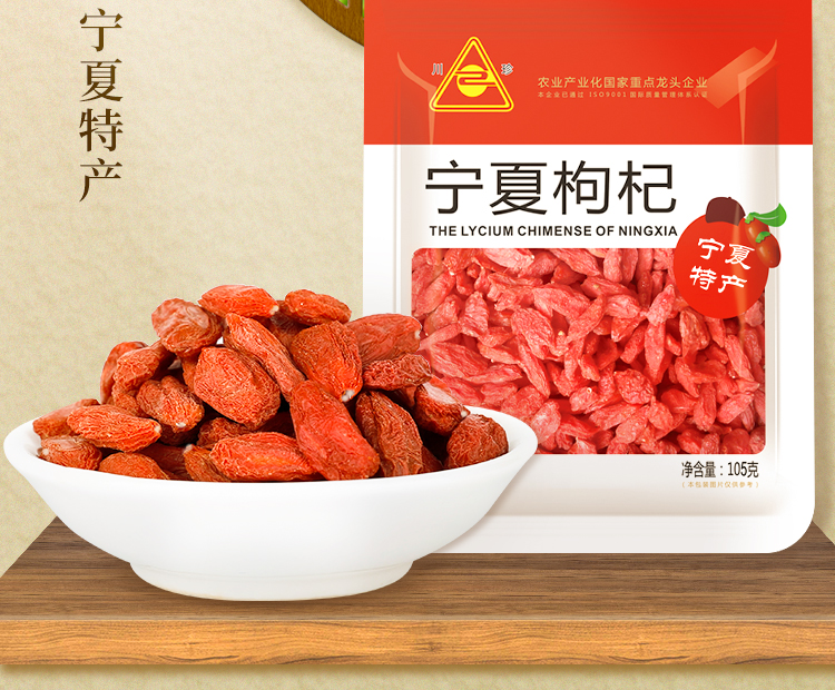 商品名称:川珍 宁夏枸杞 105g 红枸杞子茶 南北干货 煲汤食材红枣银耳莲子百合羹配料