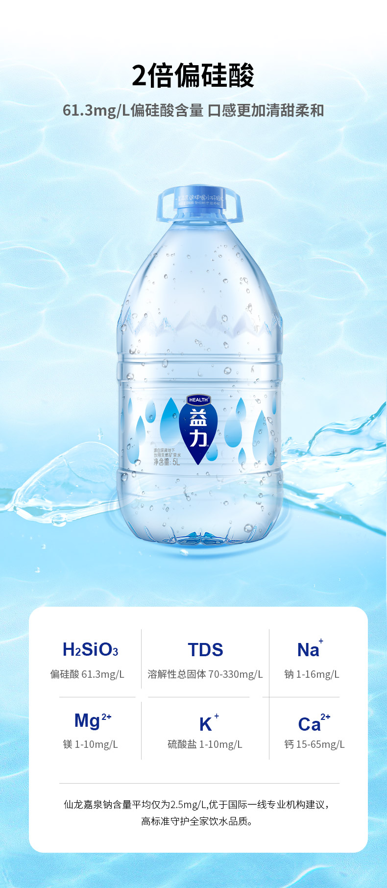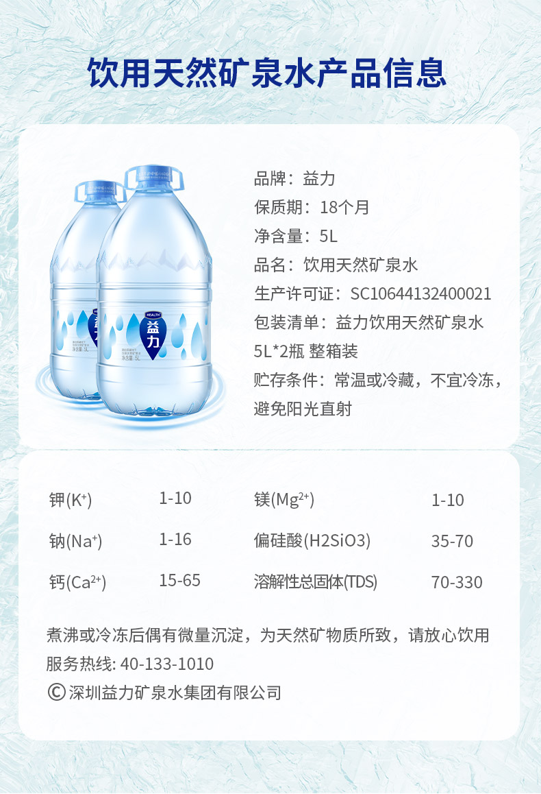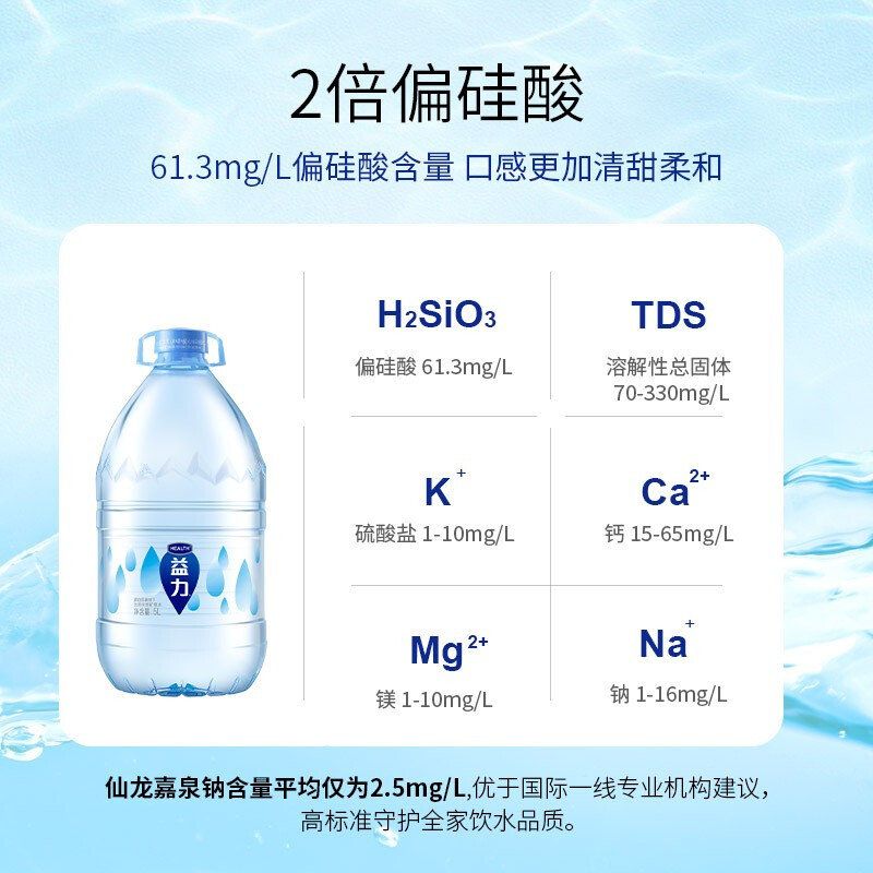 商品名称:益力天然矿泉水整箱桶装饮用水桶装 5L