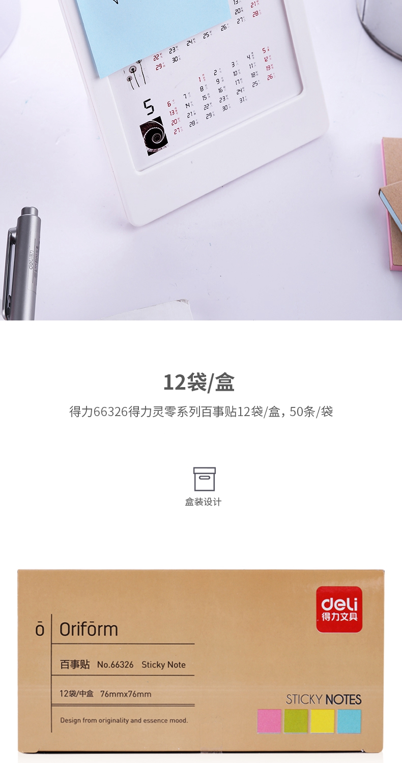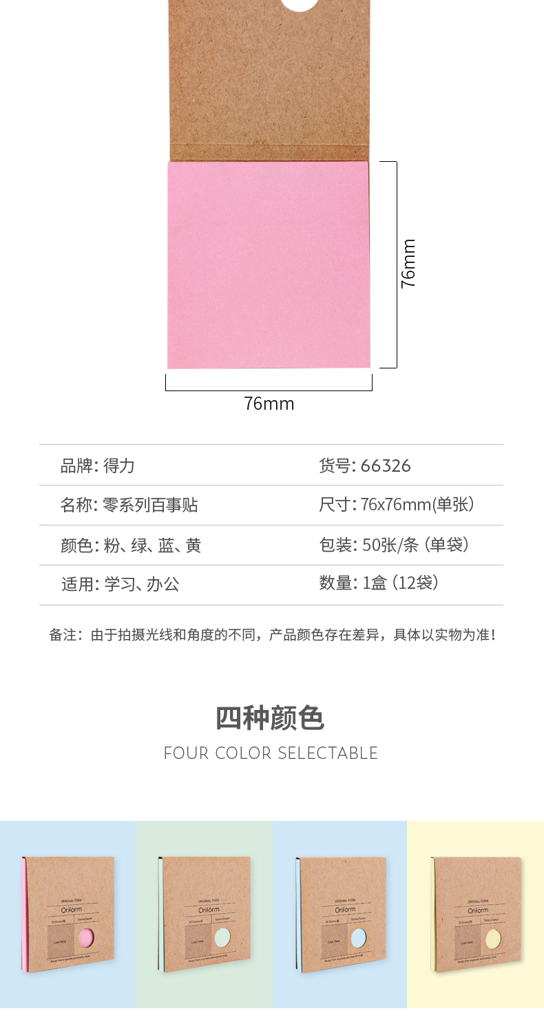 商品名称:得力(deli)66326 便签纸/百事贴/便利贴 50张/本 (混色)