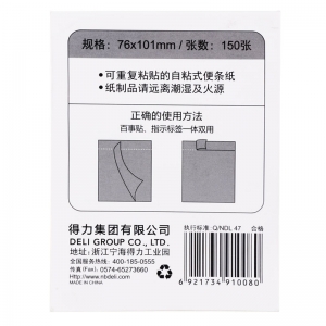 商品名称:得力(deli) 7150 /150页荧光混色百事贴/易撕便利贴 76×76mm