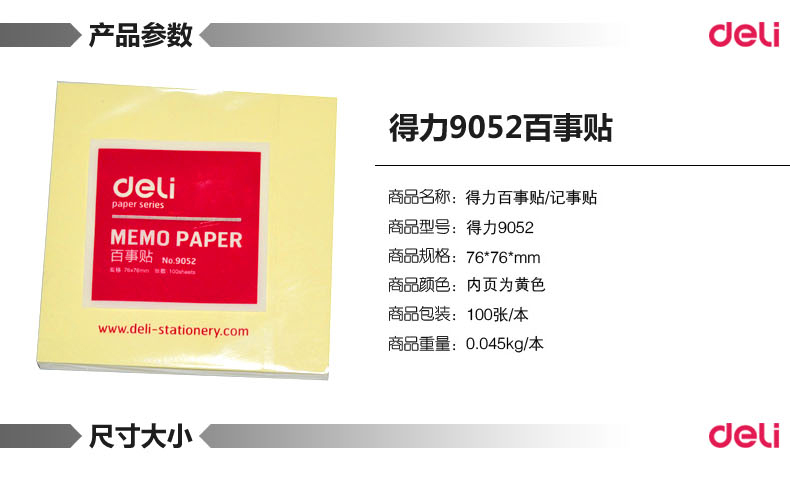 商品名称:得力 办公 9052彩色百事贴 记事贴 便签本 N次贴便利贴(黄色)