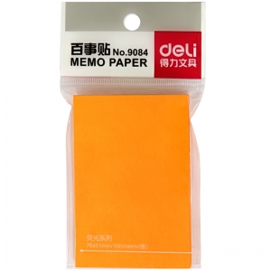 商品名称:得力(deli) 9084 76×51mm/100页荧光纸/便条纸/便利签(混色)