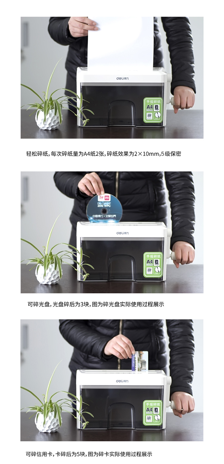 得力(deli)9934个人/家用手摇式多功能碎纸机 5级保密