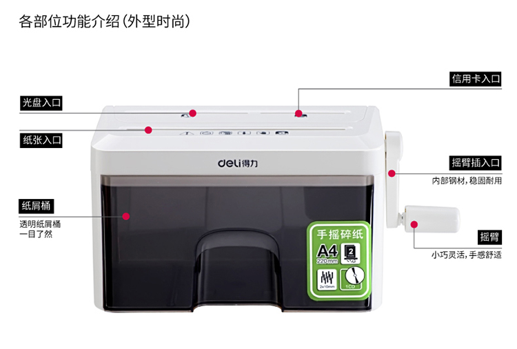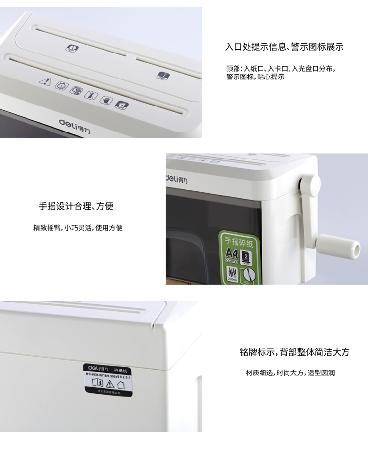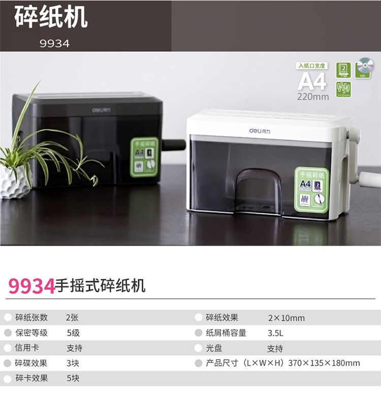 商品名称:得力(deli)9934个人/家用手摇式多功能碎纸机 5级保密