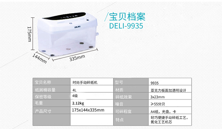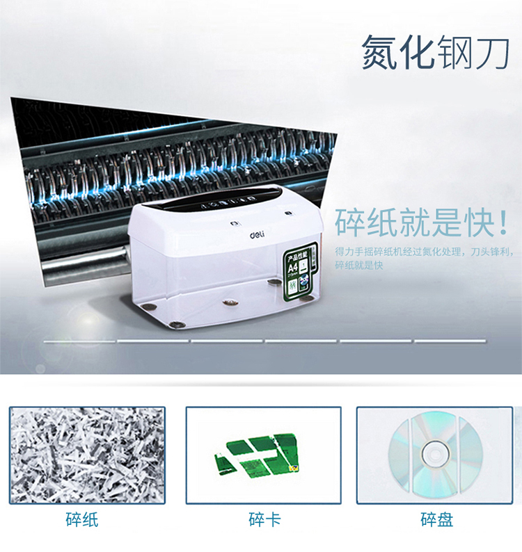 商品名称:得力(deli)9935手摇式多功能碎纸机 个人办公/家用 4级保密