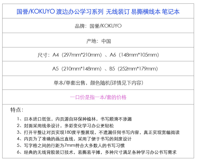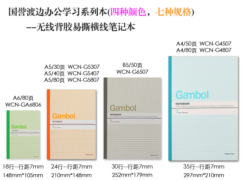商品名称:渡边(Gambol) WCN-G6007 B5 100页胶装软皮本 6本/包